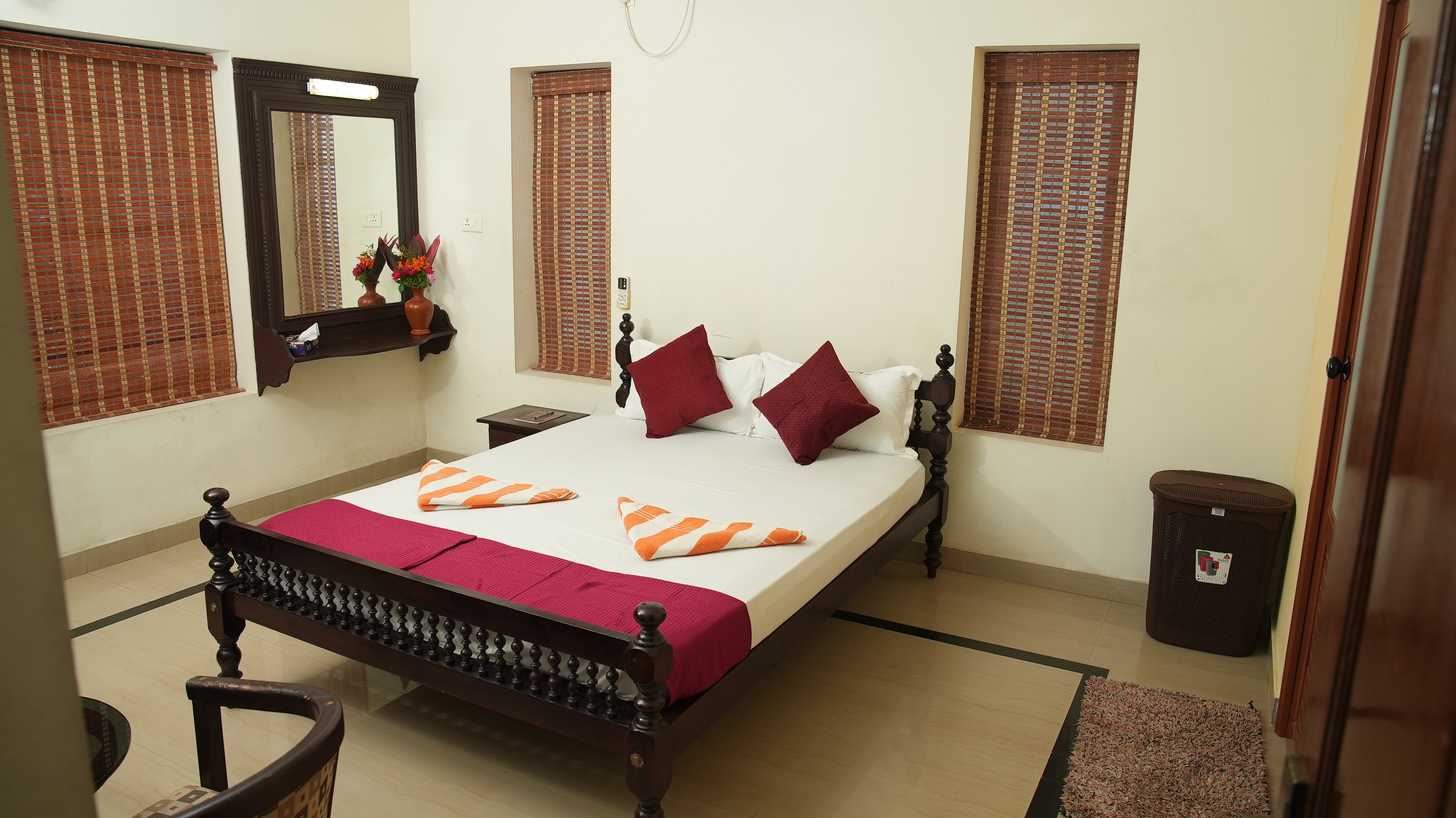 Earthy teak, custom lighting, and linen drapes that filter Kerala’s golden light.